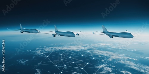 Aerial flight connectivity revolution global skies digital art high altitude wide angle network innovation