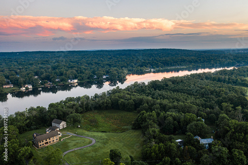 Aerial of Sunrise over Kingston Princeton New Jersey