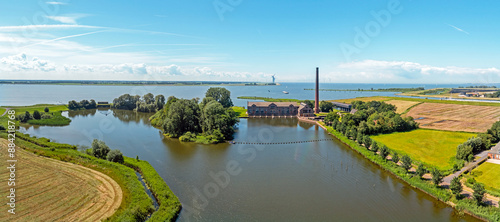 Aerial panorama from the Wouda pumping station near Lemmer in Friesland the Netherlands