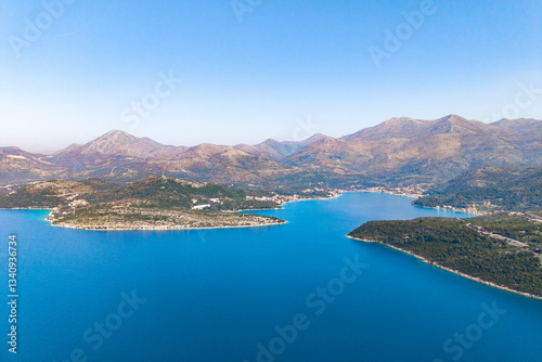 Aerial panorama view of a small town Slano, near Dubrovnik, Dalmatia region, Croatia