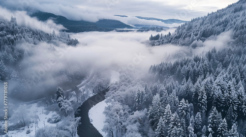 drone, aerial, oregon, winter, forest, snow, mountain, landscape, cold, mountain, sky, nature, tree, panorama, tree, fog, ice, fir, view, frost, season, white, cloud, snowy, glacé, cloud, river