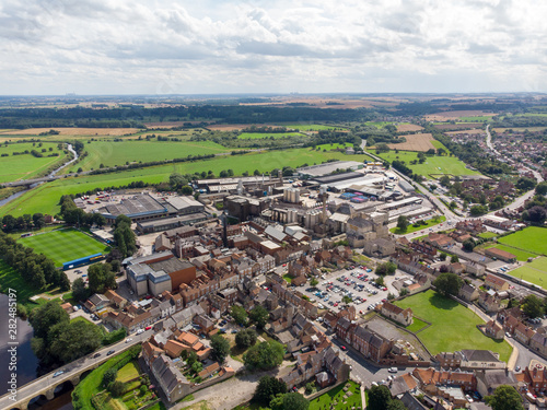 Aerial photo of the the historic town of Tadcaster located in West Yorkshire in the UK, taken on a bright sunny day