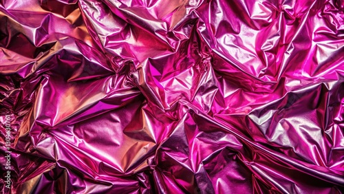 Aerial shot: a crumpled pink foil surface, shiny and metallic, perfect background.