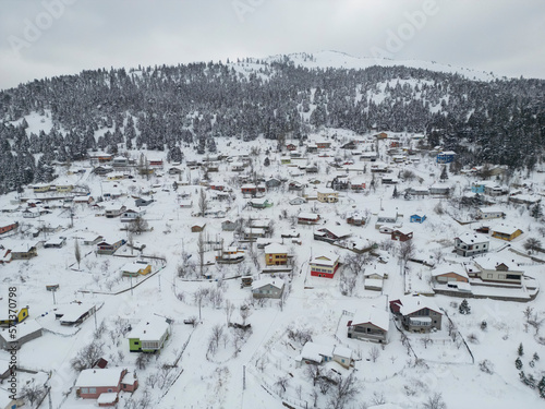 Aerial shots of living quarters, summer houses and winter landscapes on high plateaus