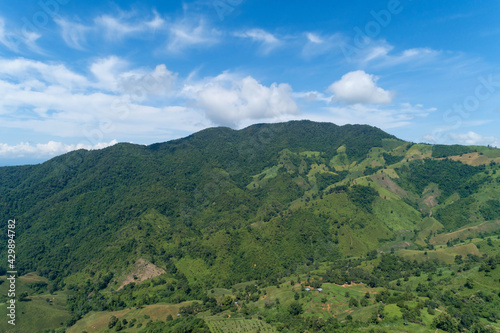 Aerial top down mountain Texture of nature forest scenery view Rainforest in sunny day