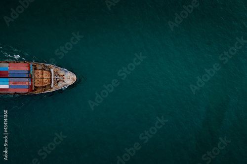 Aerial top view container cargo ship in import export business commercial trade logistic and transportation