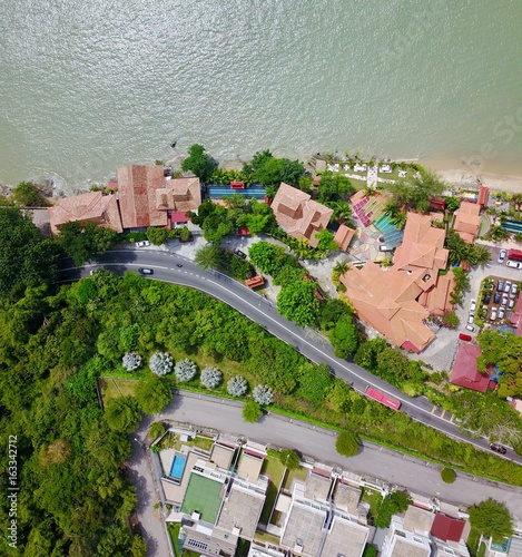 Aerial view from the drone above the roofs on the Penang island,Malaysia