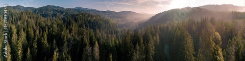 aerial, forest, tree, mountain, daytime, sun, landscape, nature, green, wood, scenery, wilderness, pine, coniferous, environment, sky, hill, panorama, view, timberland, fir, background, scene, terrain, peak, ridge, slope, vale, horizon, altitude, summit, overlook, vista, countryside, remote, untouched, tranquil, serene, calm, peaceful, quiet, mist, fog, haze, overcast, dusk, twilight