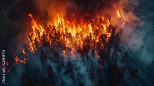 fire, forest, wildfire, flames, smoke, tree, burning, aerial, view, night, inferno, destruction, disaster, emergency, heat, danger, hazard, devastation, intense, blaze, conflagration, hot, dark, orange, red, damage, loss, nature, environment, ecological, calamity, catastrophy, crisis, global, warming, climate, change, carbon, emission, tragedy, timberland, wood, pine