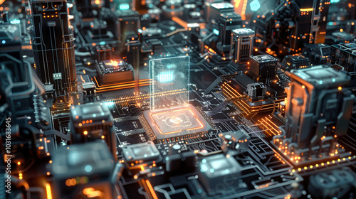 chips, holographic, interface, futuristic, building, integrated, circuit, advanced, technology, digital, art, high, resolution, ambient, light, sleek, design, urban, landscape, electronic, component, connectivity, innovation, photorealistic, circuitry, tech, modern, architecture, smart, illuminated, detailed, illustration, vibrant, graphic, virtual, reality, city, conceptual, neon, light, environment, system, robotic, model