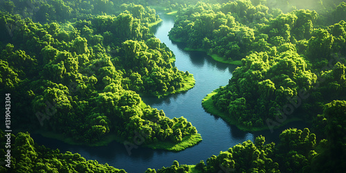 Aerial View of a Lake Reflecting the Colors of an Autumn Forest for Seasonal Landscapes, Nature Art, or Travel Inspiration