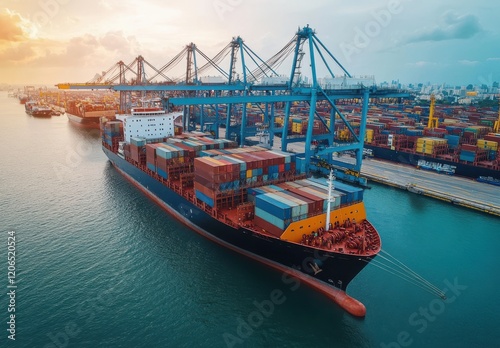 cargo, ship, port, shipping, container, crane, ocean, transport, industry, maritime, logistic, harbor, freight, water, transportation, vessel, delivery, business, economy, nautical, skyline, trade, import, export, sea, good, dock, commercial, supply, coast, blue, infrastructure, sunset, marin, international, travel, colours, modern, aerial view, landscape, cloud, active, daylight, scene, urban, activity