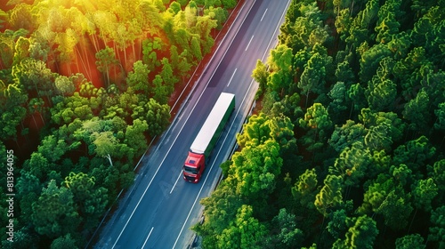 truck, highway, forest, aerial view, transportation, greenery, road, logistic, nature, vehicle