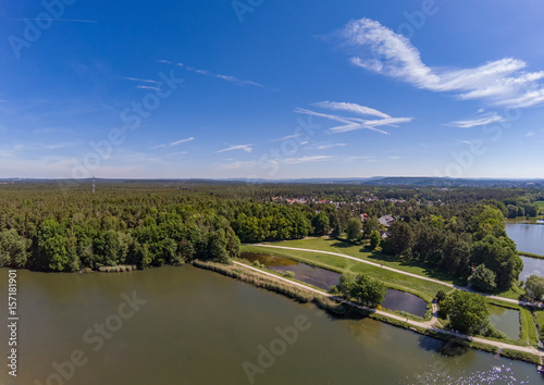 Aerial view of a small lake in the district of Buechenbach of the city of Erlangen
