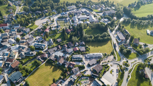 Aerial view of a village in the alpine mountains, Lofer, Austria
