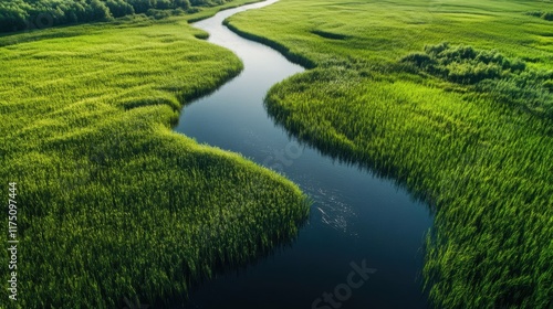 river, grass-land, nature, green, water, aerial, landscape, lush, peaceful, tranquil, scenic, outdoors, environment, natural, rural, beauty, grass, wilderness, eco, serene, vibrant, harmony, flowing, summer, stream, meandering, calm, untouched, idylli, refreshing, countryside, bright, tropical, ripple, wetland, blue, vegetation, habitat, clean, organic, fresh