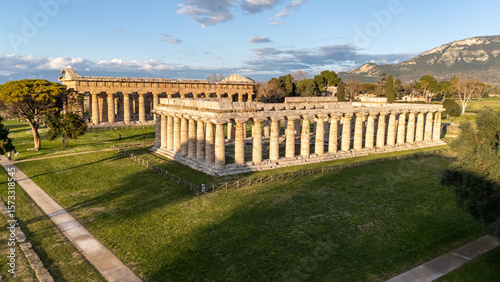 Aerial View of Ancient Greek Temples in Paestum