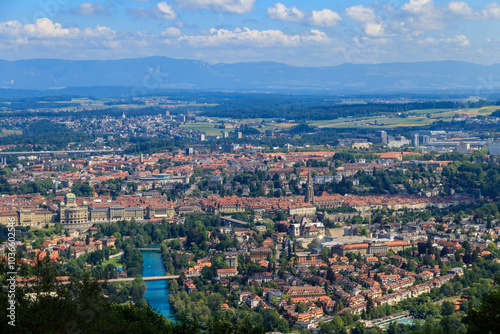 Aerial view of Bern city from Gurten mountain, Switzerland