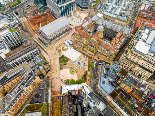 Aerial view of Birmingham, a major city in England’s West Midlands region, with multiple Industrial Revolution-era landmarks