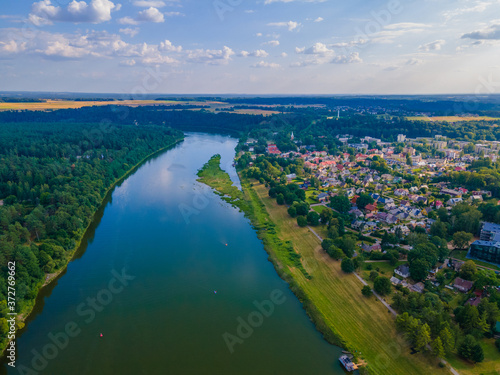 Aerial view of Birstonas city wich is located on the shore of Nemunas river in Lithuania. It's a small SPA resort