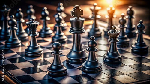 Aerial View of Black Chess Pieces Silhouettes on a Board, Perfect for Game Strategy Illustrations and Educational Materials
