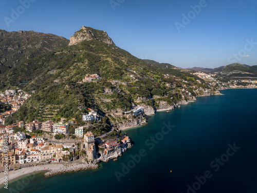 Aerial view of Cetara, a small town along the Amalfi Coast, Salerno, Campania, Italy.