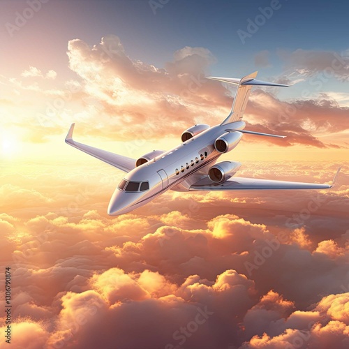 Aerial view of charter private jet flying above.