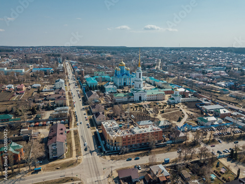 Aerial view of city of Zadonsk and Nativity of Our Lady Monastery
