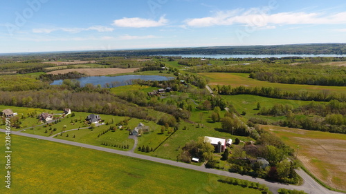 Aerial view of countryside and lake