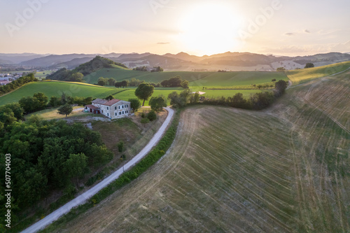 Aerial view of countryside on Marche region in Italy