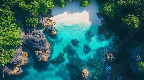 Aerial view of crystal clear beach tropical island nature serenity