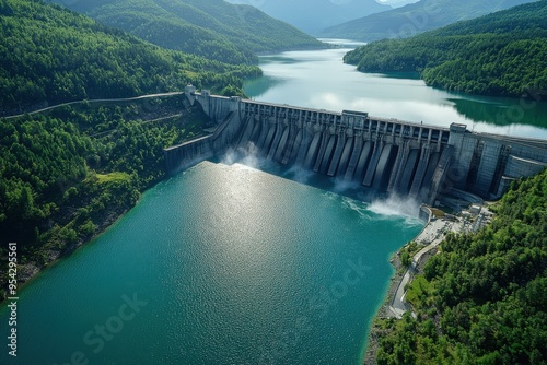 dam, reservoir, water, aerial view, nature, landscape, forest, hill, energy, infrastructure, environment, river, hydroelectric, engineering, renewable energy, power generation, scenic, greenery, waterway, ecosystem, mountain, industrial, natural beauty