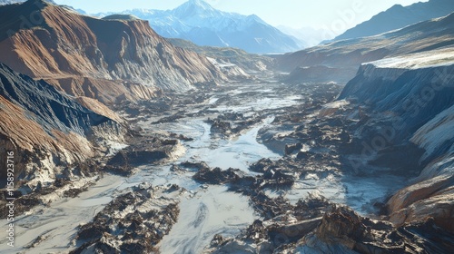 aerial, view, vale, erosion, landscape, mountain, terrain, natural, disaster, environment, geographic, sunlight, shadow, geologic, weather, devastation, earth, formation, rock, dirtied, photo, scenery, wilderness, nature, water, flow, bright, midday, topography, canyon, river, damage, event, affected, region, scenic, beauty, huge, panorama, exploration, landform, summer
