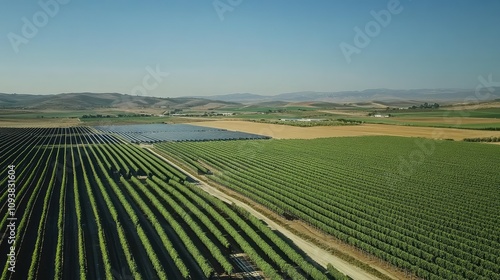 agriculture, vinery, landscape, aerial, green, solar, field, crop, farmland, rural, nature, sunshine, farming, irrigation, environment, growth, pattern, plantation, horizon, sky, tree, sunny, planting, harvest, season, earth, dirtied, expansive, hill, fresh, outdoors, healthy, energy, renewable, sun, natural beauty, cultivation, visual, tranquil, scenery, produce