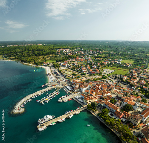 Aerial view of Fazana, a small town with a small harbour along the Adriatic Sea coastline, Istria, Croatia.