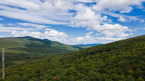 Aerial view of green mountain range