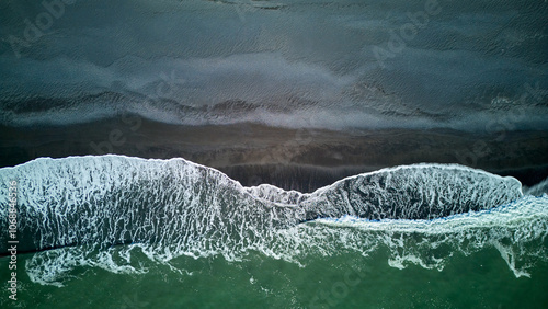 aerial view, iceland, punalu'u beach, wave, coastline, sea, wave, nature, beach, coast, landscape