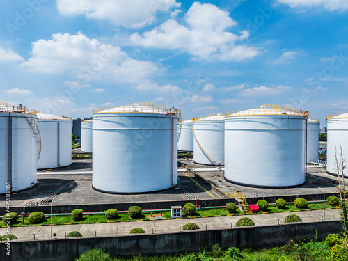 white, industrial, oil, tank, business, fuel, energy, gasoline, crude oil, equipment, construction, container, danger, depot, nobody, trade, building, chemical, engineering, environment, explosive, exterior, gas, industry, liquid, metal, storage, warehouse, gasoline, china, aerial view, aerial, day, blue, sky, export, crude, factory