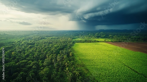 rainforest, jungle, tree, green, sky, cloud, storm, dramatic, dark, cloudscape, sunlight, landscape, aerial, view, nature, tropical, foliage, canopy, palm, lush, vibrant, texture, pattern, agriculture, farm, rural, natural, growth, vegetation, ecology, organic, plant, beauty, scenic, summer, colours, scenery, bright, life, fresh, high-coloured, photo, image