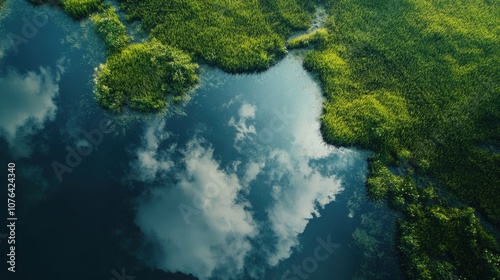 aerial, view, lush, paddy, field, organised, row, crop, water, reflecting, sky, green, nature, landscape, rural, agriculture, calmness, environment, scenery, sunlight, farming, irrigation, blue, serenity, earth, vibrant, season, growth, peaceful, plant, natural, harvest, horizon, beauty, depth, climate, cloud, ripple, large, expanse, waterway, lake
