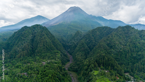 aerial view of Mount Merapi is the most active volcano in Indonesia located in the central part of Java Island in Sleman Regency, Yogyakarta