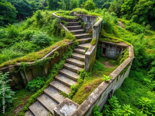 stair, ruin, concrete, aerial, decay, vegetation, landscape, overgrown, photo, urban, exploration, nature, cracked, structure, environment, old, abandoned, forgotten, history, detail, perspective, texture, pattern, sunlight, shadow, scenic, tranquil, serene, erosion, heritage, rustic, weathered, journey, pathway, step, decayed, art, beauty, vintage, element, scenery, wilderness, contrast, archaeology, remnant, topview