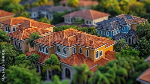 home, roof, architecture, greenery, landscape, residential, tile, design, colours, nature, suburb, community, property, garden, environment, sunlight, structure, urban, aesthetic, real estate, luxury, neighbourhood, palm, tree, view, peaceful, vibrant, modern, style, building, exterior, cosy, warm, inviting, serene, tropical, contrast, elevation, detail, space, layout, symmetry, calmness