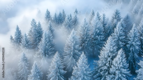 winter, forest, tree, pine, fir, snow, frost, glacé, fog, mist, cloudy, sky, nature, landscape, aerial, drone, winter landscape, snowy, cold, peaceful, serene, magical, winter landscape, white, blue, evergreen, branch, wilderness