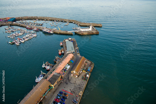 aerial view of South Bay Beach and Harbour Scarborough, North Yorkshire England