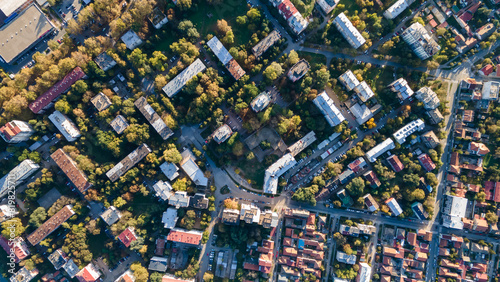 Aerial view of suburban houses in new modern development area. Small city on aerial view. Scenic seasonal landscape from above aerial view of a small town in countryside Pancevo, Serbia