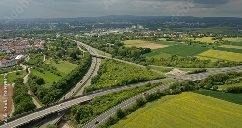 Aerial view of the A661 motorway, Preungesheimer triangle, behind the mountain Taunus, Frankfurt, Hessen, Germany