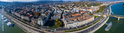 Aerial view of the city Budapest in Hungary on a sunny day in autumn.