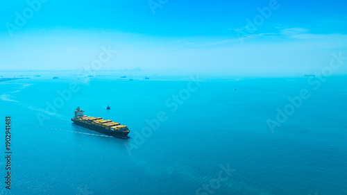 Aerial view of the freight shipping transport system cargo ship container. international transportation Export-import business, logistics, transportation industry concepts