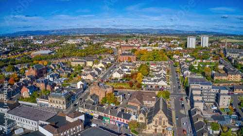 Aerial View of the Glasgow Suburb of Coatbridge, Scotland, United Kingdom during Autumn